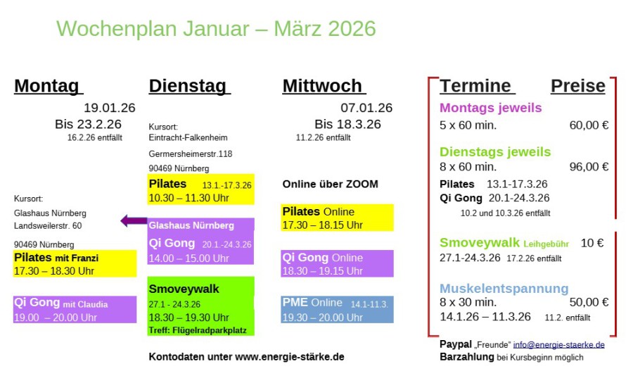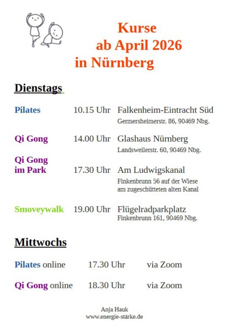 Alle Qi Gong Kurse ab einer Anzahl von 8 Terminen auch Wochenendkurse